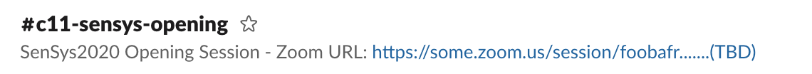 Or, from the conference program web page ( SenSys2020 / BuildSys2020 ) click a Slack channel hyperlink for each session. - Open the Zoom URL: